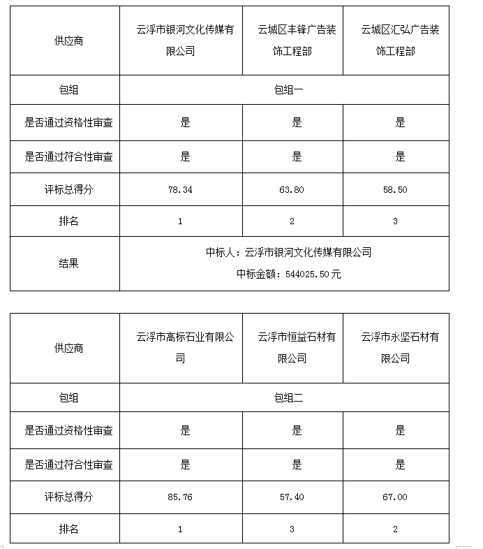 1:中標供應商名稱 云浮市銀河文化傳媒有限公司 法人代表 唐海群 地址 云浮市云城區(qū)高峰羅桂橋新桂區(qū)45幢9號一層一卡商鋪(包組一)